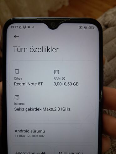 Xiaomi Redmi Note 8T — smartfon - Model: Redmi Note 8T - MIUI versiyası: MIUI Global 12.5.6 (stabil) - Android versiyası: 11 (RQK1.201004.002) - Yaddaş: 32 GB daxili (istifadədə 23.8 GB göstərilir...