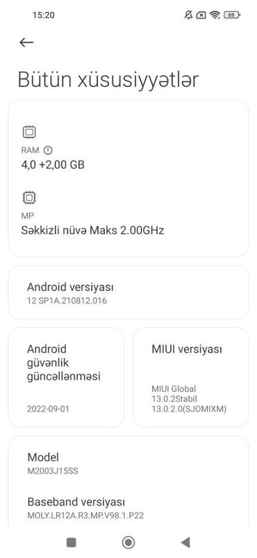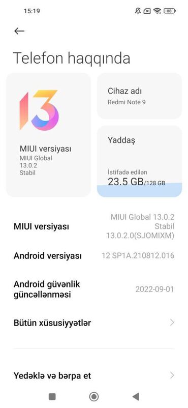 Redmi Note 9, 128 GB, rəng - Mavi, Barmaq izi, İki sim kartlı, Face ID