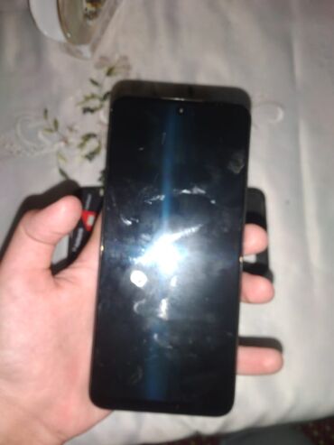 - Ekran: ön tərəfdə mərkəzləşdirilmiş “punch‑hole” kamera kəsiyi; ekran üzərində şaquli xətt və çat izləri görünür