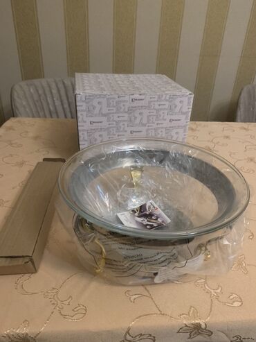 Mətbəx və süfrə dəsti – müxtəlif qrafin və stəkanlar, desert qabları və çay stəkanları - Paşabahçe armudu çay stəkanları: klassik forma, şəffaf şüşə. Qutu ilə. - Şüşə şampan/şərab qədəhləri: 6 ədə...