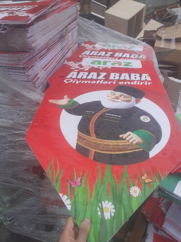 Reklam işi ilə məşğul olanlara yararlıdır üzündəki reklam rahatlıqla soyulur çox şeyə yararlıdır və nəm keçirməyən məhsuldur Reklam plakatları – “Araz Baba qiymətləri endirir” mövzusunda, altıbucaqlı/ox uclu forma