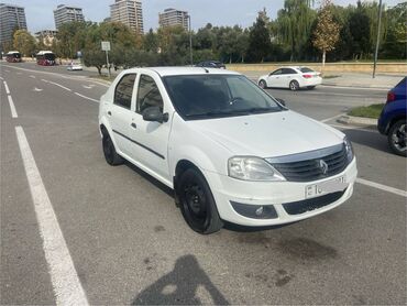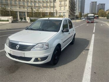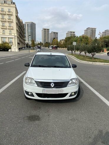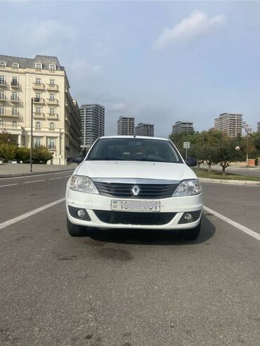 Renault Logan, ağ rəng, sedan kuzov. Xüsusiyyətlər: - 4 qapı, 5