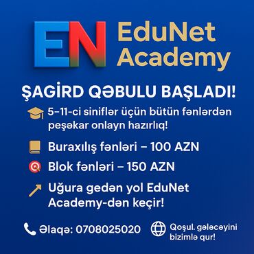 Провожу занятия по математике 2 раза в неделю до 9 класса онлайн. Те кто запишется сейчас оплата 50 манат(индивидуально). Дополнительно: каждое воскресенье будут проводиться тестовые занятия в груп...