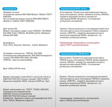 - Domofon və giriş sistemləri üçün TM/DS iButton və 125 kHz RFID açar/breloklarının sürətli surətlənməsi və proqramlanması.