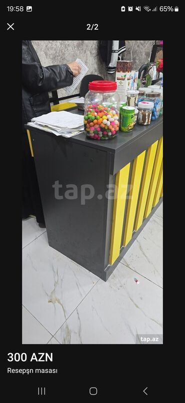- Ölçü: Geniş ön panel və iş səthi ilə kassalı və ya reception istifadəsinə uyğun.165 in,55ə,siyirmələri,kassa yeri var.