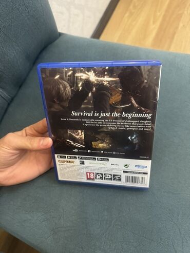 Bu, PlayStation 5 üçün hazırlanmış "Resident Evil 4" video oyunudur. Oyunun üz qabığında əsas personaj və oyunun mövzusu əks olunub. "Resident Evil" seriyasının bir hissəsi olan bu oyun, döyüş və sağ qalma elementlərini özündə birləşdirir. Qutunun üzərində PS5 loqosu və 18 yaşdan yuxarı istifadəçilər üçün nəzərdə tutulduğunu bildirən yaş məhdudiyyəti qeydi var. "Capcom" tərəfindən hazırlanmış bu oyun, oyunçulara maraqlı və gərgin bir oyun təcrübəsi təqdim edir.