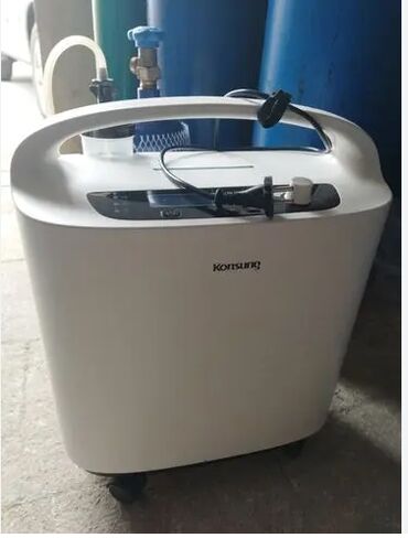 Qeyd: Şəkillərdə Konsung və RespiroX tipli portativ oksigen konsentratorları görünür; cihazlar elektrik şəbəkəsindən işləyir və tənzimlənən axınla yüksək təmizlikdə oksigen verir.