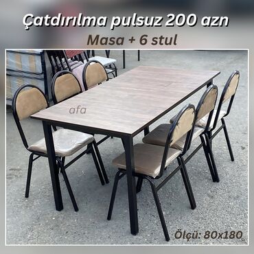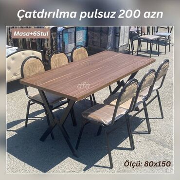 Restoran, kafe, bağ, mətbəx və s üçün masa destleri Masa + 6 Stul 200 azn Yeni və Hazır Çatdırılma pulsuz Elani Screen Edib Watcapa Gonderin !!