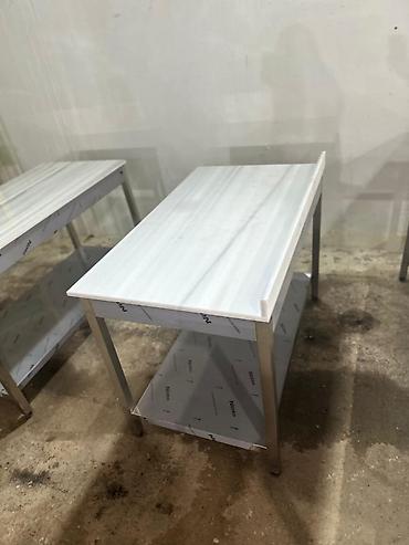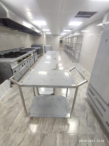 Paslanmayan poladdan iş masası - Material: AISI tipli paslanmayan polad, qalınlığı vizual olaraq təxminən 0.8–1.0 mm üst panel - Konstruksiya: 4 möhkəm metal ayaq, üst stolüstü panel və geniş alt ...