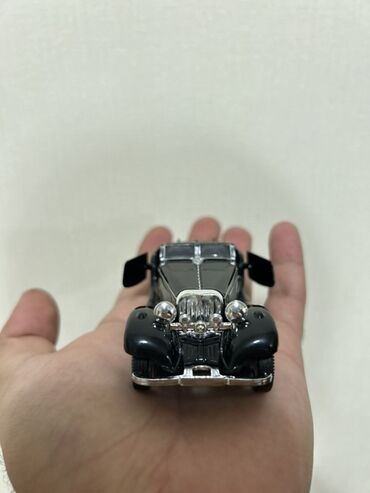 Kolleksiya üçün metal model maşın – klassik sedan dizaynlı, qara rəngdə. Xüsusiyyətlər: - Material: metal gövdə, plastik detallarla - Rəng: parlaq qara, xrom effektli ön və arxa bamperlər - Ölçü: ...
