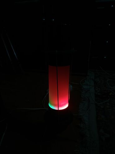 - Silindrik şüşə kolbada rəngli maye və parafin effekti ilə klassik lava hərəkəti