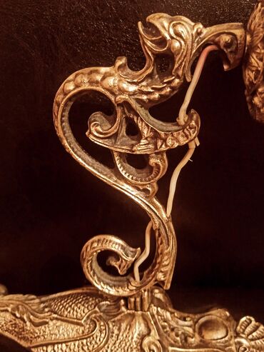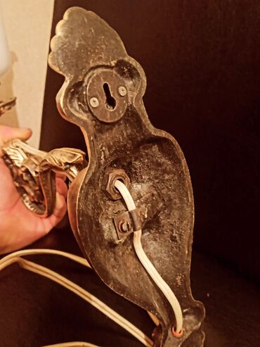 - Material: metal karkas (qızılı rəngdə), dairəvi açma-naqişli dekorativ kəmər, şüşə/kristal asqılar
