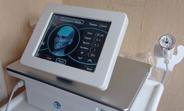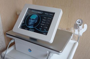 - Handpiece: dəyişən RF səviyyələri, sərinlədici başlıqla kombinə iş; portativ tutacaq üçün stend.