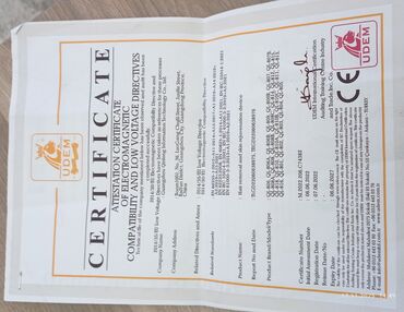 - Sertifikatlaşdırma: CE uyğunluğu barədə UDEM attestatı (şəkillərdə).