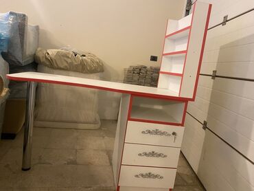 - Material: laminat/LDSP səth, ön hissədə xrom dayaq ayağı