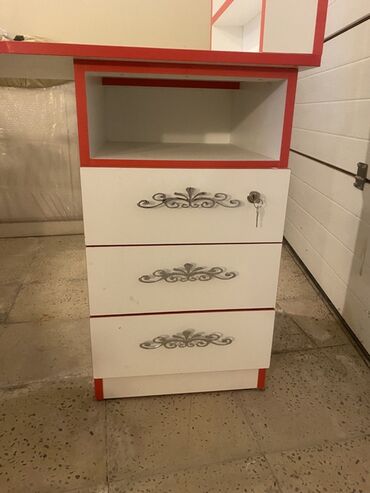 - 3 çekmece: dekorativ tutacaqlar, yuxarı çekmecədə açar kilidi (açar daxildir)