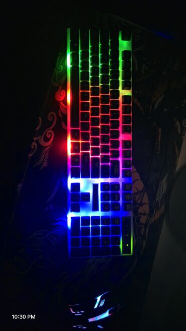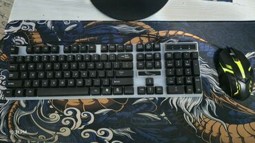 RGB işıqlı oyun klaviaturası + siçan + LED kənarlı mousepad seti - Tam ölçülü klaviatura: F1–F12 funksiyalar, tam rəqəm bloku, ox düymələri. - RGB arxa işıqlandırma: çoxrəngli işıq zolaqları və hə...