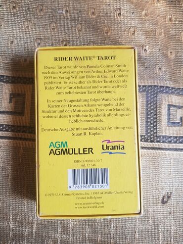 Tarot kartları, ideal vəziyyətdə, açılmayıb, hər şeyi yerində, kartların özü avstraliyadan alınıb, Belçika istehsalıdır.