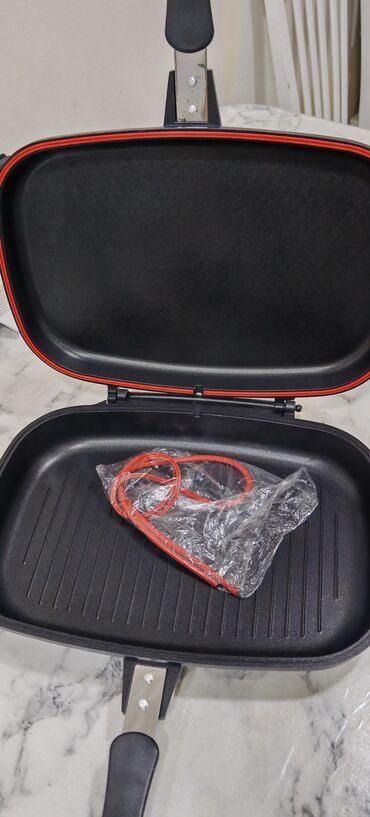 OMS ikiüzlü qril tava – Made in Turkey - Brend: O.M.S. - Tip: iki qapaqlı/çevirən qril tava (double grill pan) - Material: qalın, yapışmayan qranit örtükli səth - Daxili quruluş: bir tərəfi yivli ...Giriş•Qeydiyyat
