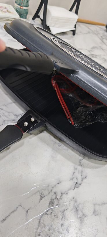 OMS ikiüzlü qril tava – Made in Turkey - Brend: O.M.S. - Tip: iki qapaqlı/çevirən qril tava (double grill pan) - Material: qalın, yapışmayan qranit örtükli səth - Daxili quruluş: bir tərəfi yivli ...