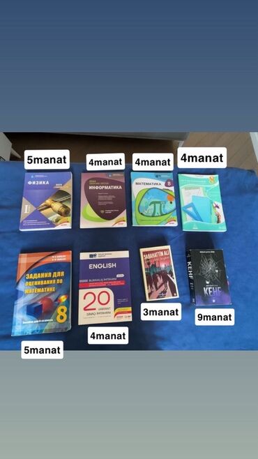 Dərs və hazırlıq üçün müxtəlif fənn kitabları və bədii ədəbiyyat satılır: