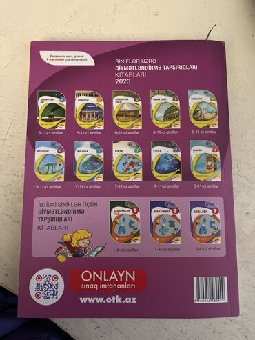 - Arxa səhifədə siniflər üzrə qiymətləndirmə tapşırıqları kitabları haqqında məlumat yer alır: Azərbaycan dili, ədəbiyyat, Azərbaycan tarixi, ümumi tarix, coğrafiya (6–11-ci siniflər), riyaziyyat, biologiya, kimya, fizika, English (5–11-ci siniflər), həmçinin ibtidai siniflər üçün (1–4-cü siniflər) Azərbaycan dili, riyaziyyat, English.