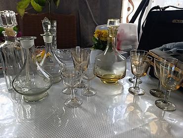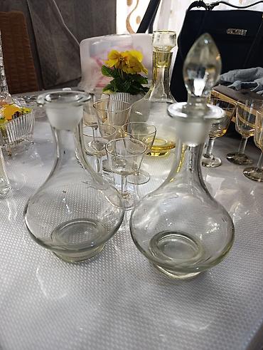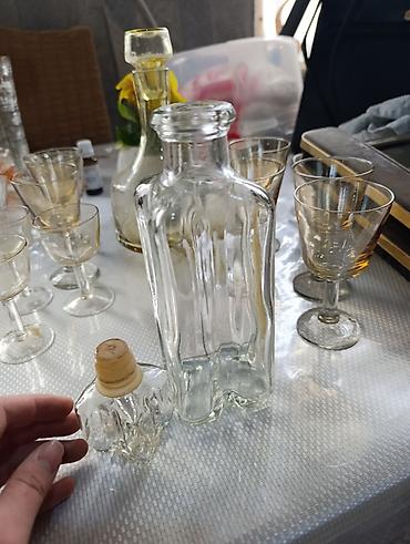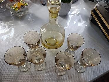 - Tərkib: 1 ədəd geniş gövdəli şüşə karaf + 6 ədəd kiçik ayaqlı bakal