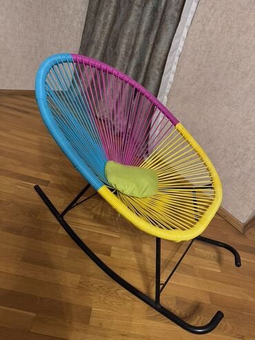 Funksional yelləncək kreslo həm interyerə rəng qatır, həm də rahat istirahət küncü yaradır.