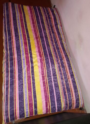 Məhsul: Komplekt yorğan və döşək dəsti - Rəng: Açıq bənövşəyi/çəhrayı (naxışlı parça) Oz doweklerimdi hec isdifade olunmayin yenidir. 4 eded 10 kloluq tek neferlik dowey 1 eded 2 neferlik boyuk ta...