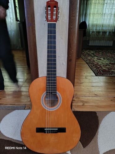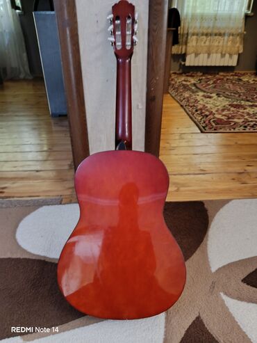 - Korpus: tam ölçülü klassik (4/4), parlaq təbii ağac rəngi ön qapaq, qırmızı-tonlu arxa və yanlar