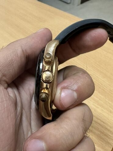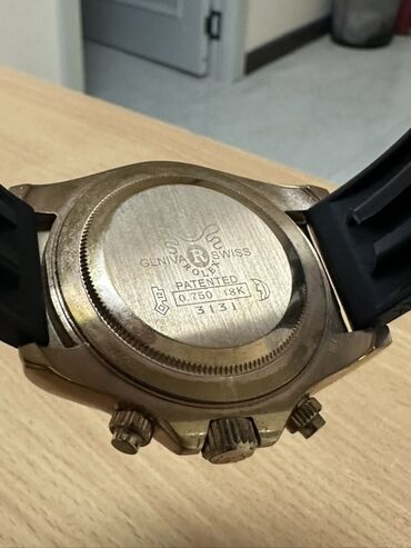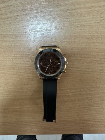 Qızılı korpuslu və qəhvəyi siferblatlı "Rolex Daytona" saatı. Saatda qara rəngli rezin kəmər və qızılı rəngli qapaq mövcuddur. Siferblatda üç alt-siferblat və dəqiqə işarələri üçün ərəb rəqəmləri var. Yan tərəfində üç düymə, arxa tərəfində isə "Rolex" loqosu və "Geniva Swiss 0.750 18K" yazısı yerləşir. Həm gündəlik istifadə, həm də xüsusi hallar üçün uyğundur.
