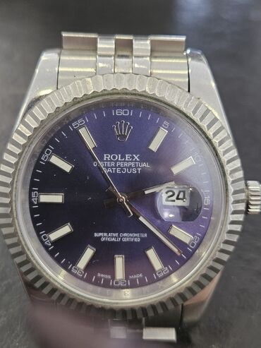 - Siferblat: tünd bənövşəyi/mavi tonlu, tətbiq olunmuş baton indekslər, loqo və “Oyster Perpetual Datejust” yazıları