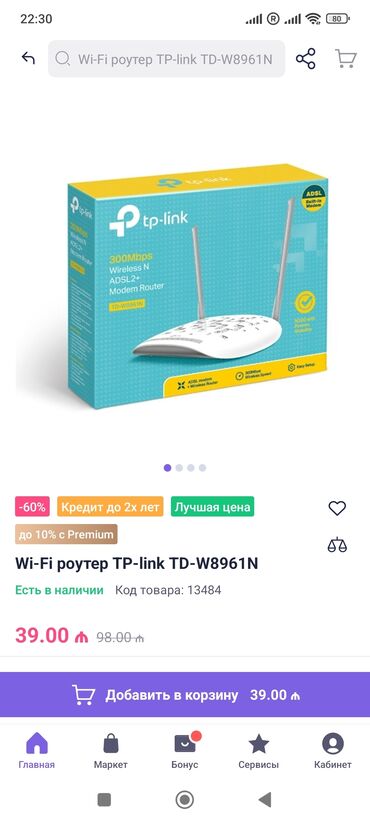 Pulsuz çatdırılmaÜnvandan götürməRouter Tp-Link TD-W8961ND. İstifadə olunub. Heç bir problemi və nasazlığı yoxdur, əla işləyir. Yeni router alındığı üçün satılır. Metroya çatdıra bilərik.