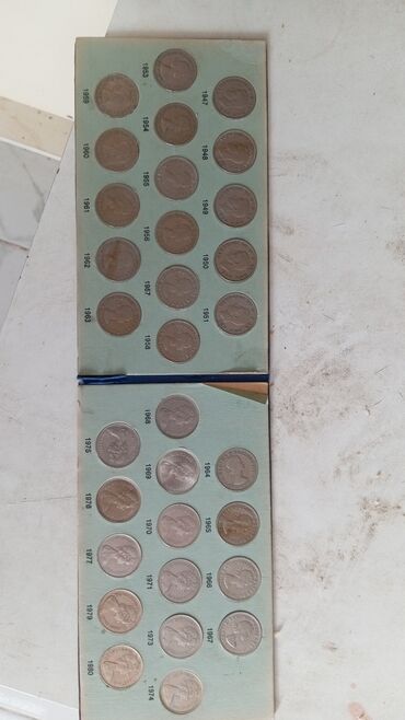 - 1947–1980 illərinə aid 10 peni sikkələri ilə birlikdə iki tərəfli səhifələrdən ibarət albom/qovluq.DEMƏK TAM ORJİNALDIR QİYMƏT DƏYƏR VERƏNLƏRƏ GÖRƏ MÜƏYYƏN OLUNACAQ