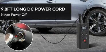 - Uzun qidalanma kabeli: 9.8 ft (təxminən 3 m) DC güc kabeli – avtomobilin 12V siqaret çıxışından enerji alır, bütün təkərlərə rahat çatır.
