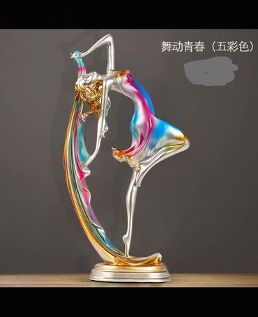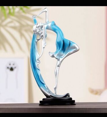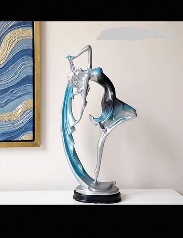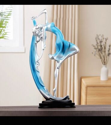 Dekorativ heykəl – “Rəqs edən balerina” - Material: polirezin/kompozit (metalvari gümüş rəngli səth), rəngli yarımşəffaf boyalar - Dizayn: dinamik poza verən balerina, dalğavari pərdə/şarf effekti...