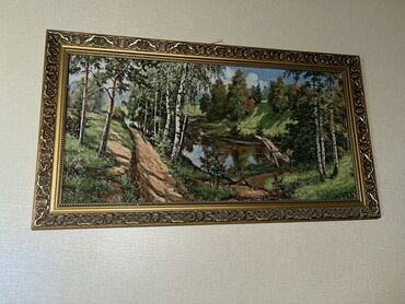 2) Mənzərə: meşə içindən keçən torpaq yol, çayın üzərində körpü, ağcaqayın və iynəyarpaqlı ağaclar, su səthində əkslər.