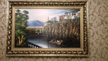 Abstrakt dizaynlı böyük ölçülü divar tablo - Texnika: üslubunda abstrakt kompozisiya - Rəng palitrası: dərin firuzəyi və mavi tonlar, qara-boz keçidlər, qızılı vurğular - Material: kətan üzərində...