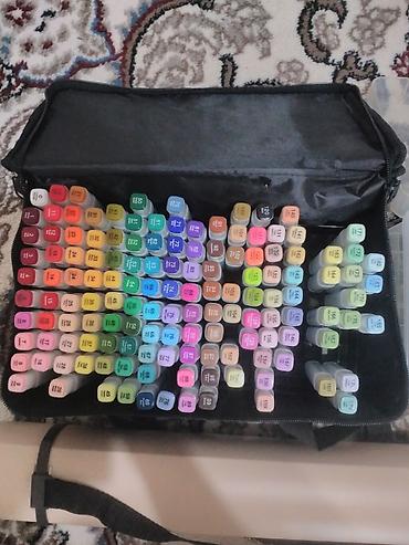 - Spirt əsaslı markerlər: 168 rəngdən ibarət böyük dəst (qara parça çantada). Rənglər qapaqlarda kodlarla işarələnib, müxtəlif tonlar – pastel, parlaq, neytral, bozlar və s.