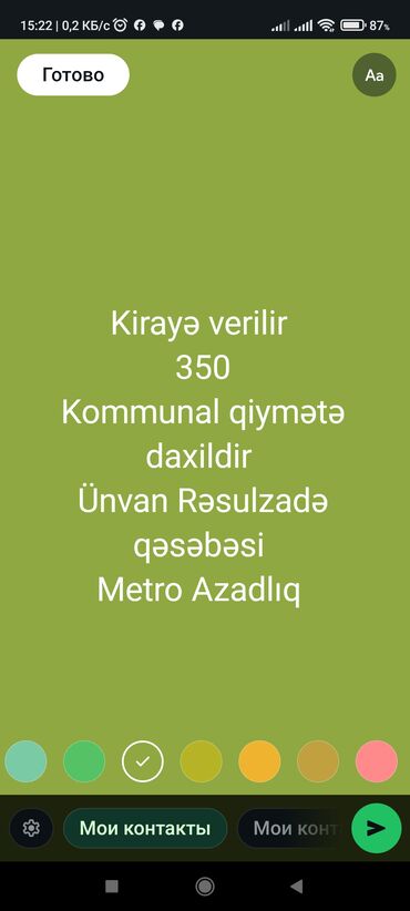 Kirayə verilir – Rəsulzadə qəsəbəsi, Metro Azadlıq yaxınlığı.. Komunal qiymətiə daxil