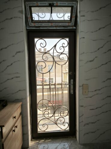 - Mətbəx çıxışı: dekorativ dəmir barmaqlıqlı şüşə qapı.