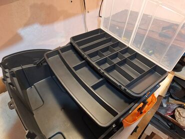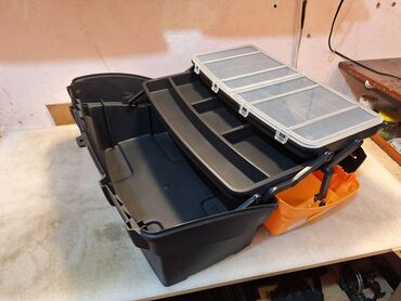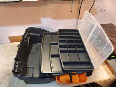Plastik alət qutusu - Rəng: qırmızı qapaq, qara gövdə və tutacaq - Material: möhkəm plastik korpus - Daşıma üçün rahat mərkəzi tutacaq - Kilidlənən ön qapaq mexanizmi (snap-tip) - Üst qapaqda kvad...