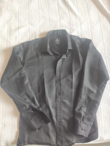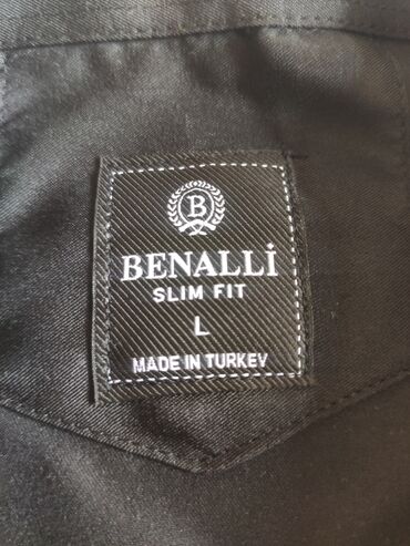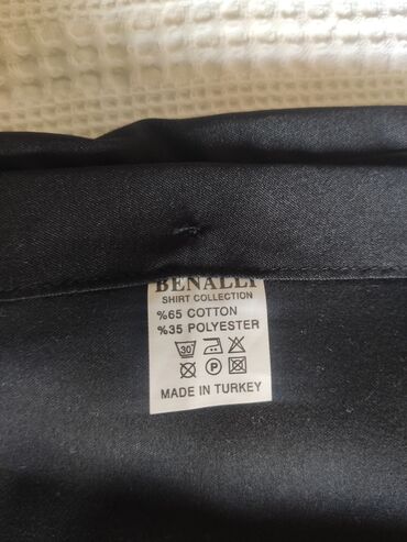Классическая совершенно новая черная рубашка,очень хорошего качества, 65 процентов хлопок 35 процентов полиестер. Размер L,но подойдет и на размер М.