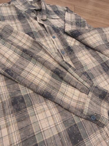 Ünvandan götürməРубашка в клетку со стразами, носили один раз. Приятная к телу, оверсайз