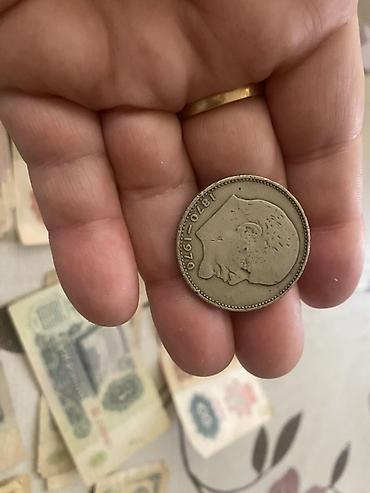 - Portretli sikkə, kənarında 1870–1970 tarixləri. Yuvarlaq haşiyə və portret relyefi ilə.