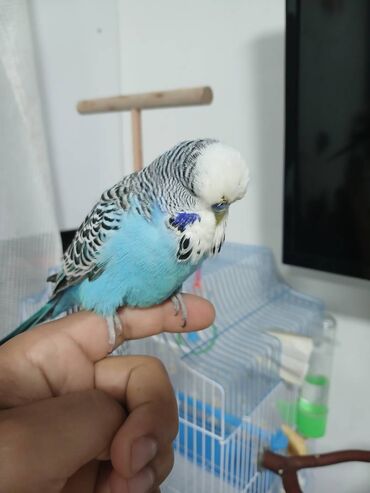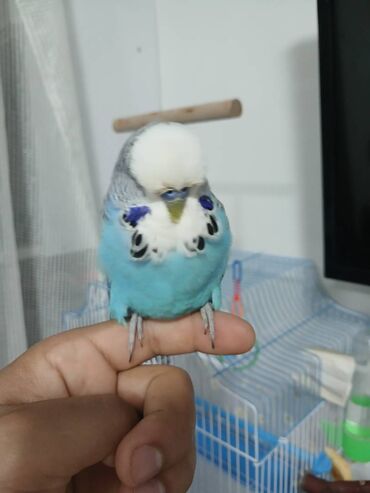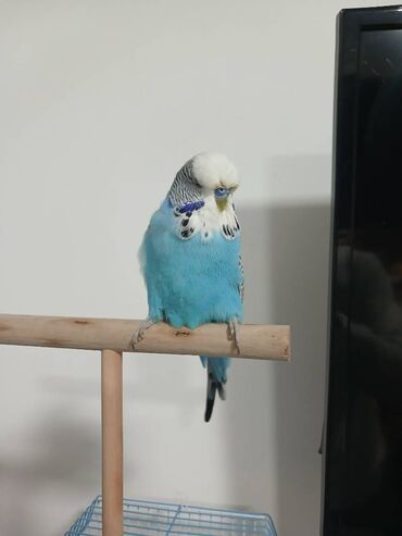 Məhsul: Dalğalı tutuquşu (budağı/əlin üstündə durmağa öyrəşmiş) Təsvir: - Rəng: açıq mavi-mavi gövdə, ağ baş, qara-bənövşəyi ləkəli naxışlar və qanadlarda zolaqlar - Növ: evdə saxlanan dalğalı tut...30 AZN