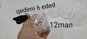 Kəsimli şüşədən hazırlanmış 6 ədəd qədəh dəsti yeni Xüsusiyyətlər: - Material: qalın, şəffaf kəsimli şüşə - Say: 6 ədəd - Dizayn: çoxşaxəli relyef və romb naxışları, klassik kristal üslubunda - F...