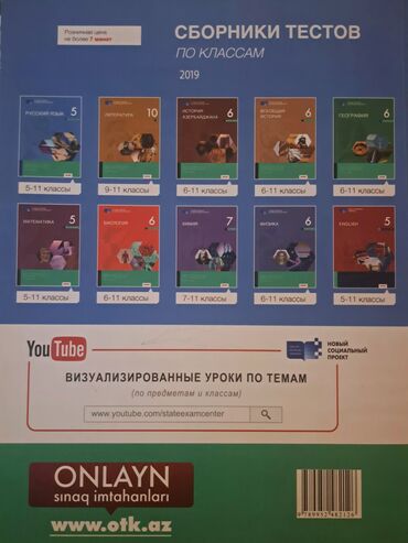 Hər biri 5AZN. Rus dili üzrə qiymətləndirmə və test topluları – 5–9-cu siniflər - Nəşriyyat: Dövlət İmtahan Mərkəzi (DİM), “Abituriyent” - Fənn: Rus dili - Format: Qiymətləndirmə üçün tapşırıql...