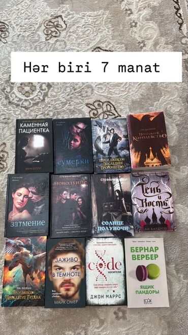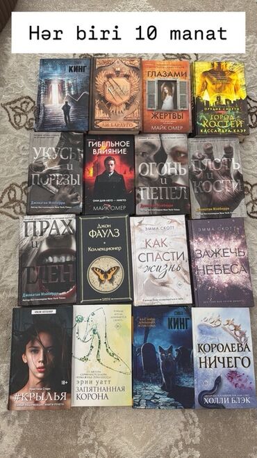 Kitablar rus dilindədir, ölçülər əsasən cib və standart formatlardadır. Şəkillərdə hər kitabın adı və qiymət kateqoriyası göstərilib. Seçimi şəkillərdəki başlıqlara uyğun edə bilərsiniz.