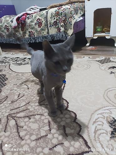 Boz rəngli pişik – zərif və sakit xasiyyətli ev heyvanı (növü mavi rus pişiyi),erkəkdi. 300 manata alınıb, 200 manata satılır. 18 aylıqdı. Sahibi xarici ölkəyə getdiyi üçün satılır.